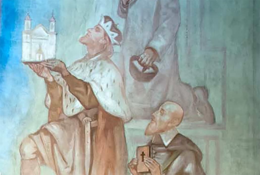 Natürlich denken wir an das Augustiner Chorherrnstift Klosterneuburg, das er gründete und wo er auch begraben wurde. Oder das Zisterzienserstift Heiligenkreuz, das er ebenfalls gründete, genauso wie das Benediktinerkloster Klein-Mariazell. Vielleicht denken wir auch an die Legende vom Brautschleier, der vom Wind verweht und neun Jahre später wiedergefunden wurde. Zusammen mit seiner Frau Agnes soll er sechszehn Kinder gehabt haben, manche sagen sogar achtzehn. Zum Vorbild für uns wurde und ist der heilige Leopold allerdings durch die Art und Weise, wie er sein Land regierte. Er war stets darauf bedacht, alle Probleme – die politischen wie die persönlichen – friedlich zu lösen und damit dem Wohl der Menschen zu dienen. Um des Friedens willen verzichtete er zum Beispiel auf die ihm zustehende Kaiserkrone, um einen Nachfolgestreit unter seinen Söhnen zu vermeiden. Der Friede war ihm eben wichtiger, weil er als Herrscher davon überzeugt war, dass Streit, Hass, Rache oder Krieg nie ein Problem lösen, sondern alle darunter zu leiden haben. Aufgrund seiner umsichtigen Art des Herrschens erhielt er in der Tradition der Kirchengeschichte daher auch die Beinamen „Der Fromme“, „Der Milde“ oder der „Freigebige“.