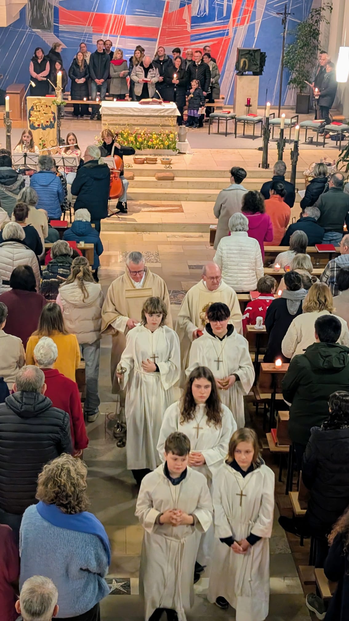 Die feierliche Osternacht im Salesianum wurde am 4. April 2026 von der Gruppe „Cantabile“ musikalisch gestaltet. Zelebrant war Pater Josef Prinz OSFS.